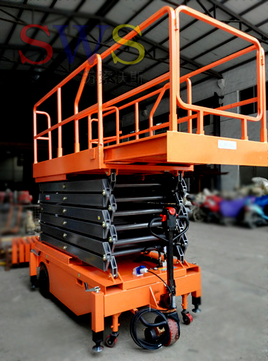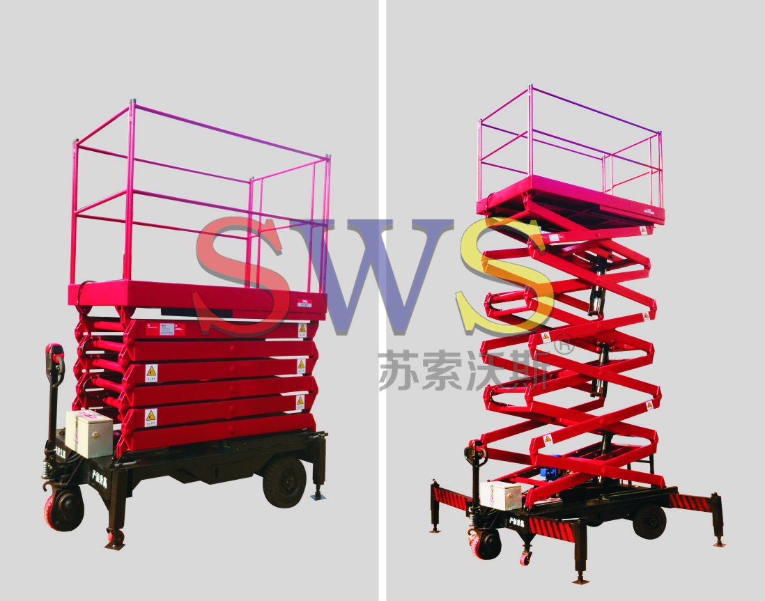 設備自身具有行走及轉向驅動功能,不需人工牽引,不需外接電源。移動靈活方便,直流電動驅動輪具有自鎖功能,驅動輪工作時剎車分離,不工作時自動鎖定。令高空作業更方便快捷