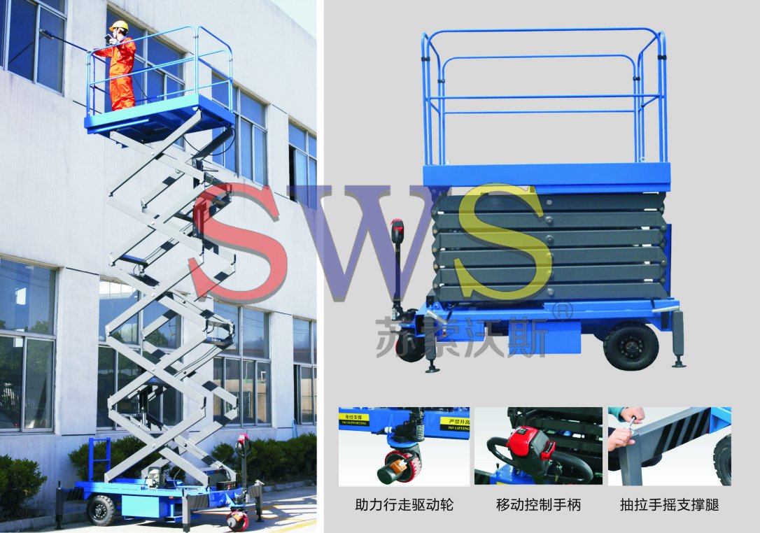 設備自身具有行走及轉向驅動功能,不需人工牽引,不需外接電源。移動靈活方便,直流電動驅動輪具有自鎖功能,驅動輪工作時剎車分離,不工作時自動鎖定。 令高空作業更方便快捷,是現代企業高效安全生產之 理想高空作業設備。