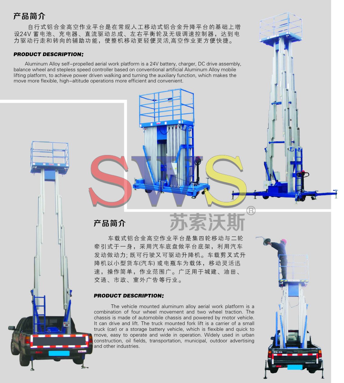 主要用途:賓館、酒店、銀行、大廳、禮堂、商場(chǎng)、超市、體育館等,適合狹窄小場(chǎng)地的高空作業(yè)維修。
