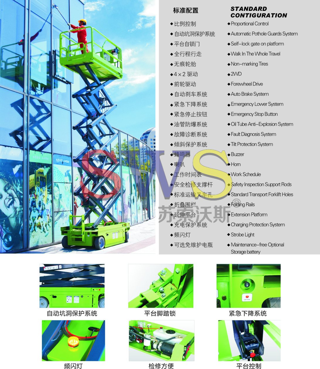 10、調節支撐腿,可保升降時水平,安全可靠